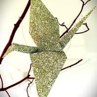 This artwork created by Jane Ellen (one of our greatest supporters) is a meditation on grief, resilience, and collective renewal. Created through a ritual process guided by the cycles of the Moon, the piece is composed of 1,000 hand-folded peace cranes, each serving as an invocation for unity, compassion, and healing. The nest forms a protective container—holding humanity through its darkest moments while nurturing the potential for rebirth and hope. Above its heart descends the Great Mother crane, symbolizing unwavering protection, empathy, and living love—an embodiment of care that revives and holds all of humanity as we find our way forward together.